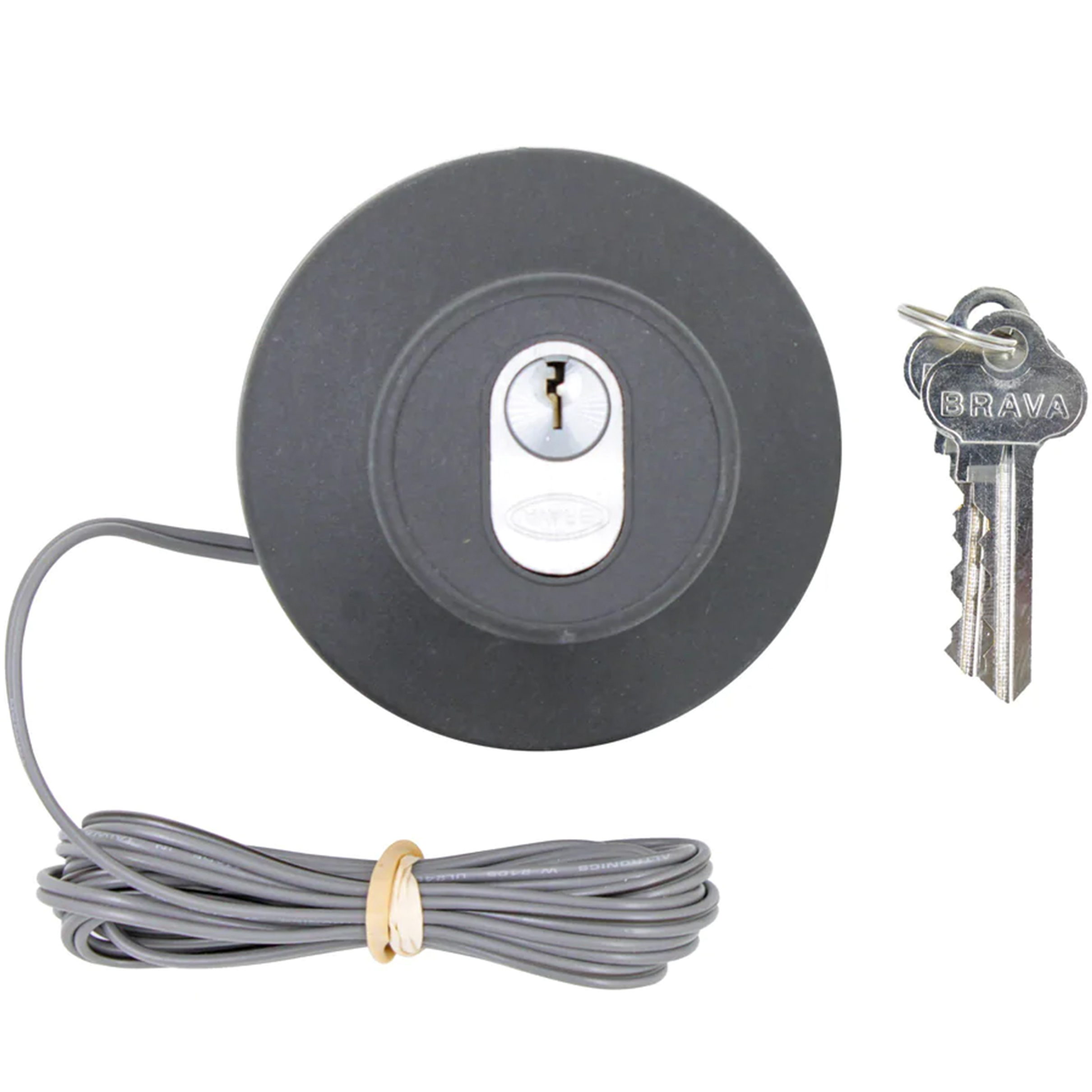 This dual access device can provide access whether you have power or not. During normal operation, turn the key and it acts as an electric key switch to open and close your door.